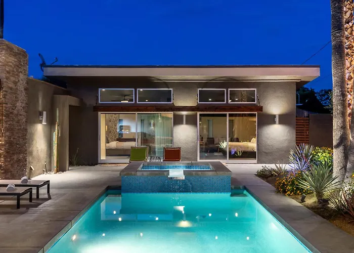 Deze 2-badkamer villa is in de Palm Springs Uptown wijk genesteld, binnen 2 km van het Palm Springs Art Museum Architecture and Design Center. Als je zin hebt om de omgeving te bezoeken, ga dan naar het Robolights op s10 minuten met de auto van deze villa.